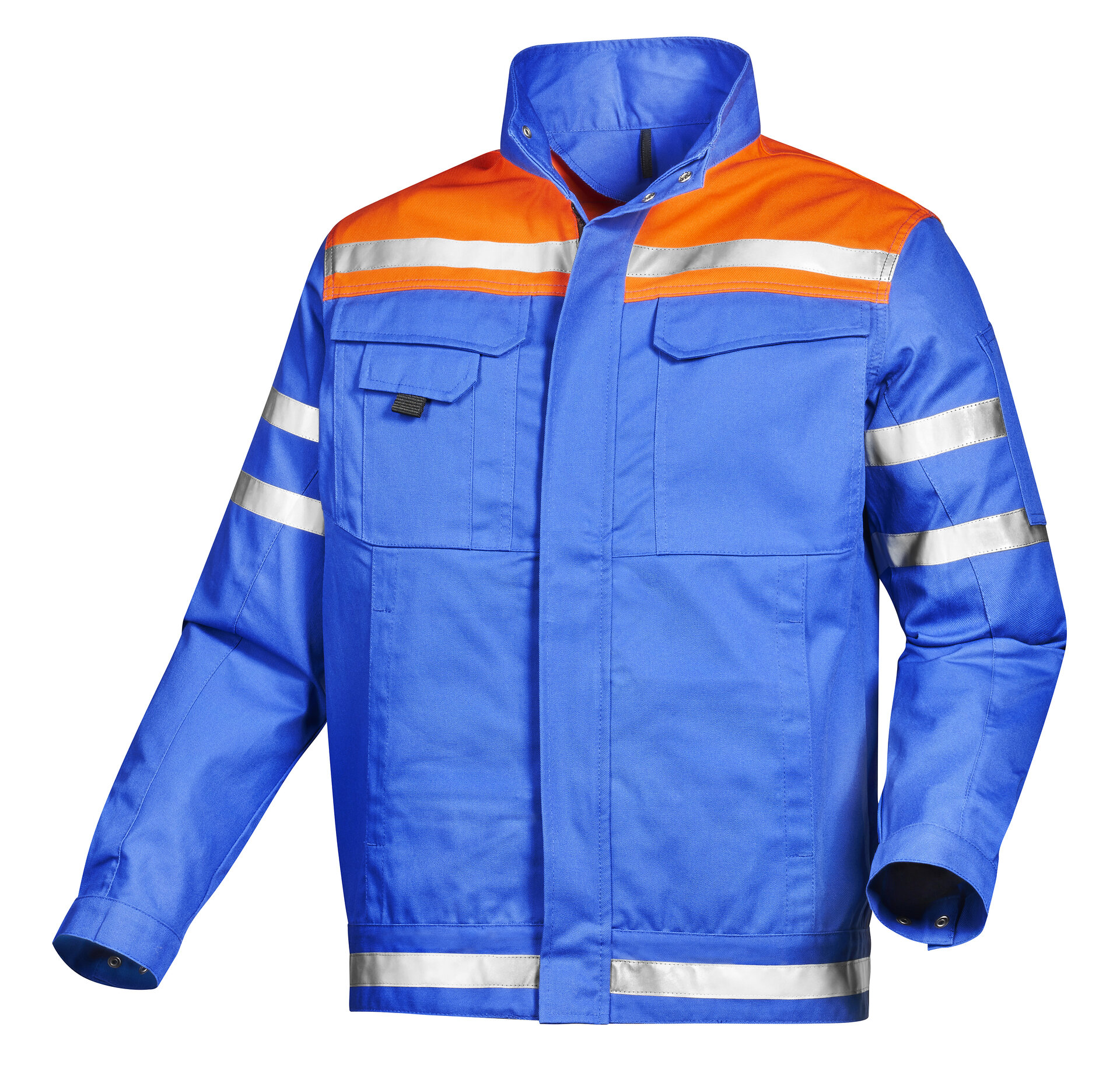 Reflexstreifen: 2,5 cm breit, je 1 Streifen auf Vorder- und Rückenpasse, je 2 Streifen auf den Oberarmen, 1 Streifen rundum auf dem Bund